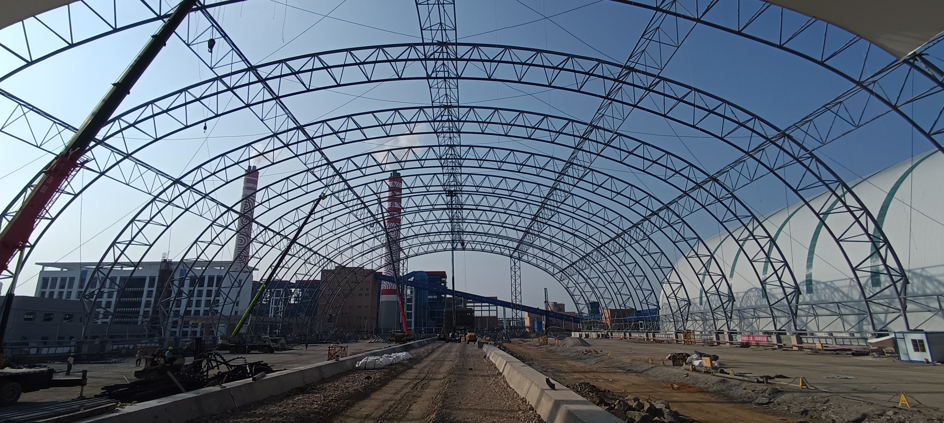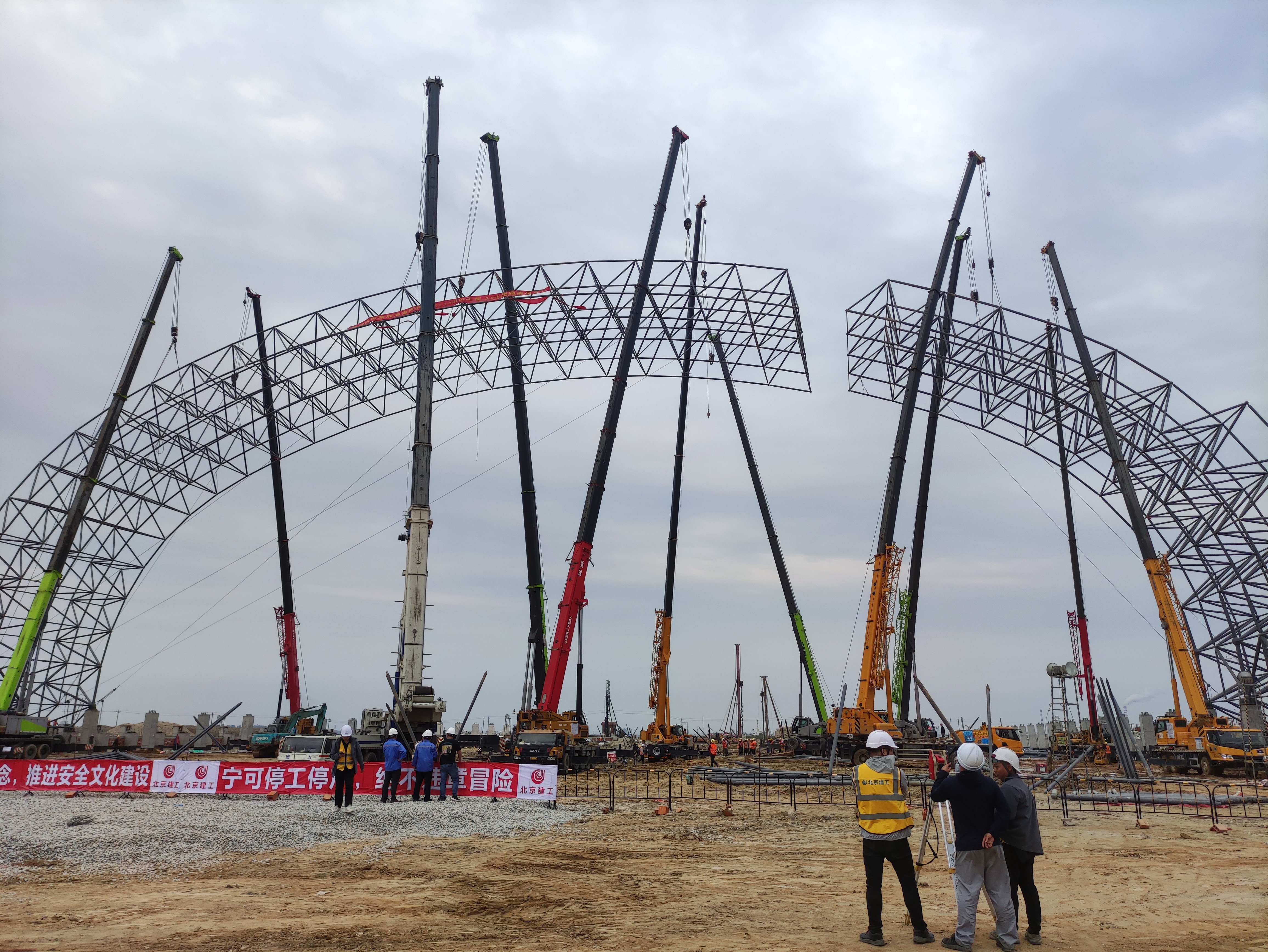 1#干煤棚鋼網(wǎng)架起步架合龍