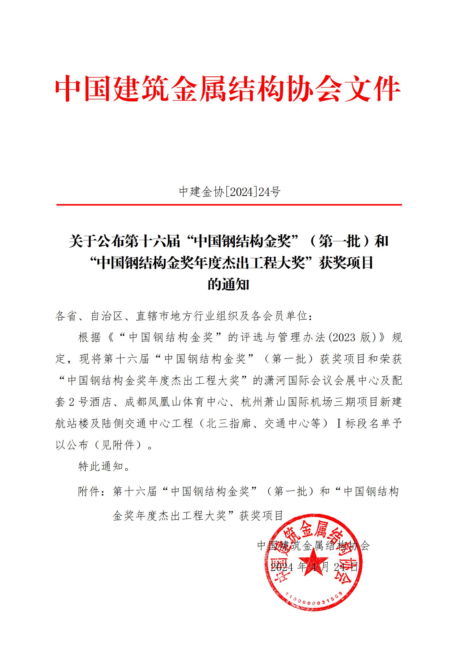 重磅 公司榮獲“中國(guó)鋼結(jié)構(gòu)金獎(jiǎng)”